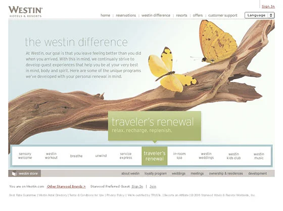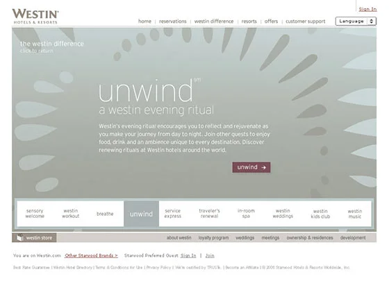2007: Designed microsite to showcase various programs of the Westin brand. Art directed Brooklyn-based Domani Studios in the execution of Flash animation and interaction.